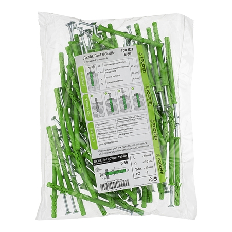 Дюбель-гвоздь 6х80 потайная манжета фас. 100шт/1ящ=25уп