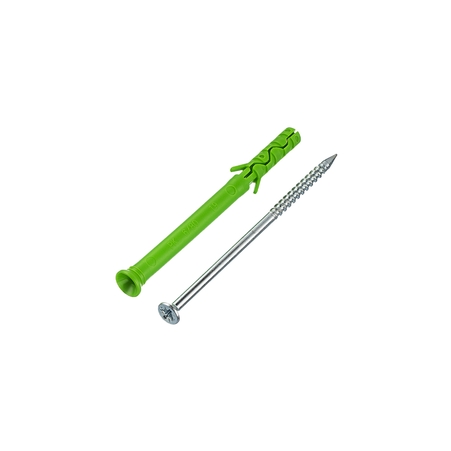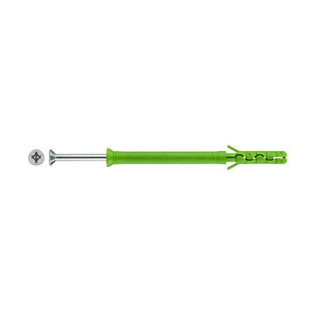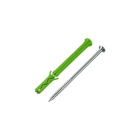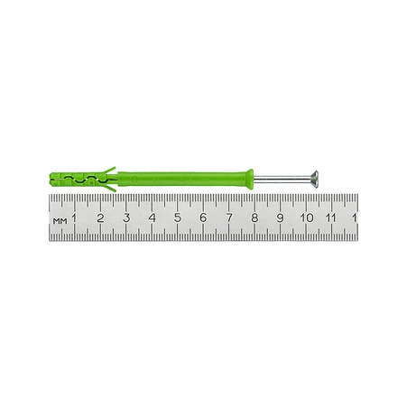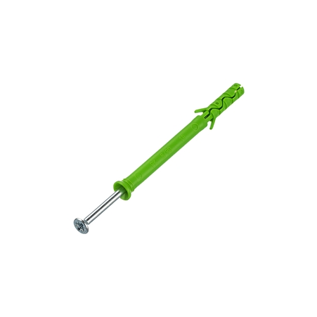 Дюбель изготовален из 100% первичного полипропилена, что обеспечивает высокую прочность и долговечность. Распорная зона дюбеля раскрывается в четырех плоскостях, гарантируя надежное крепление в материале основания.