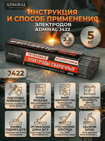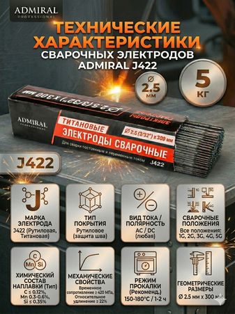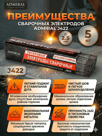 Электрод ADMIRAL 2.5мм (5 кг), J422, 1ящ=4кор