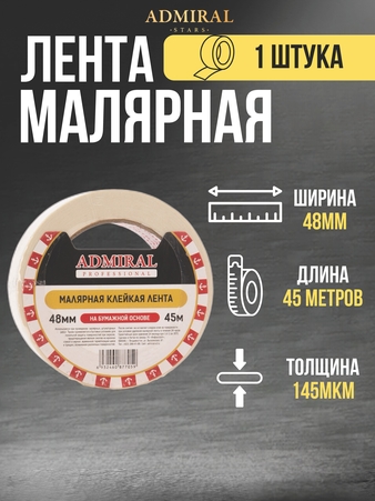 Лента малярная 36мм*45м 145мкм ADMIRAL уп/48шт