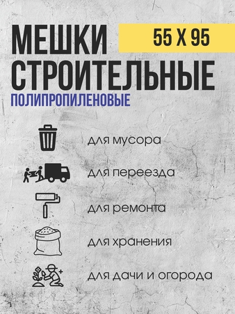 - ВЫСОКАЯ ПРОЧНОСТЬ: Благодаря плотности 40 гр/м² и усиленной конструкции, мешок выдерживает нагрузку до 60 кг. Подходит для тяжелого строительного лома, битого кирпича, песка и грунта.