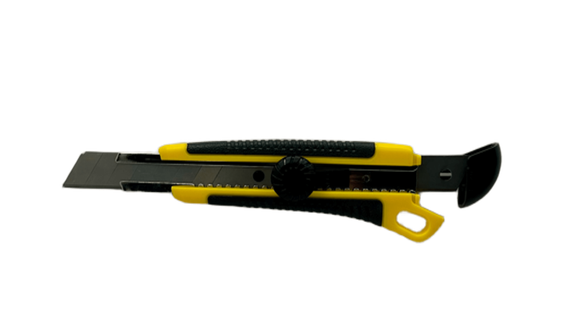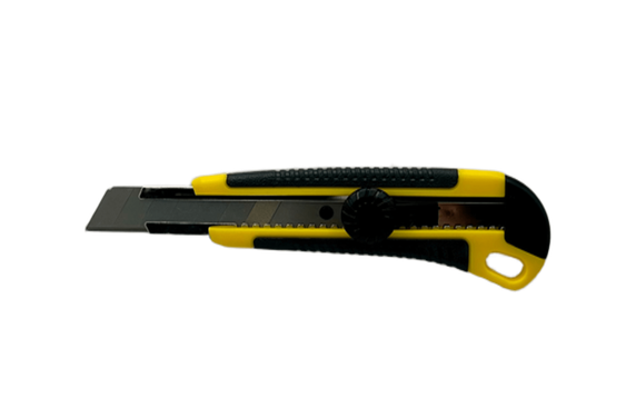 Удобный канцелярский нож с выдвижным сменным лезвием шириной 18мм и 25 мм предназначен для резки бумаги и плотного картона, корреспонденции, ткани, пленки стрейч, проводов, линолеума, также прекрасно режет кожу и резину.