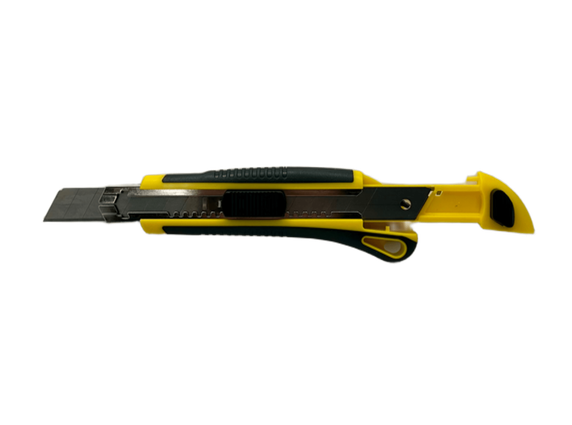 Удобный канцелярский нож с выдвижным сменным лезвием шириной 18мм и 25 мм предназначен для резки бумаги и плотного картона, корреспонденции, ткани, пленки стрейч, проводов, линолеума, также прекрасно режет кожу и резину.