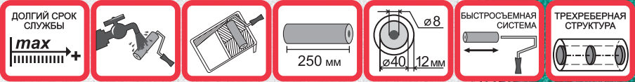 Полиакриловый ролик - служит запасной частью малярного валика. Используется с вододисперсионными, масляными, латексными красками, грунтовками, лаками, пропитками для дерева. Данный ролик не рекомендуется применять с нитролаками. Производятся из высокообъемной пряжи. Быстросъемная система креплений с внутренней трубкой.
