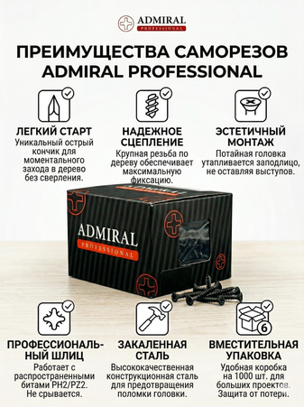 - Саморез ДФ 3,5 х 16мм ADMIRAL Ш.Б 1000шт/(Вес~895гр)/1ящ=16кор