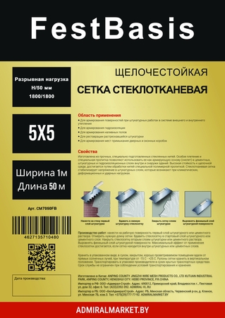 - Сетка малярная штукатурная (1800/1800 Н/50мм) 1м*50м 5х5 FestBasis (зеленая) 1/2
